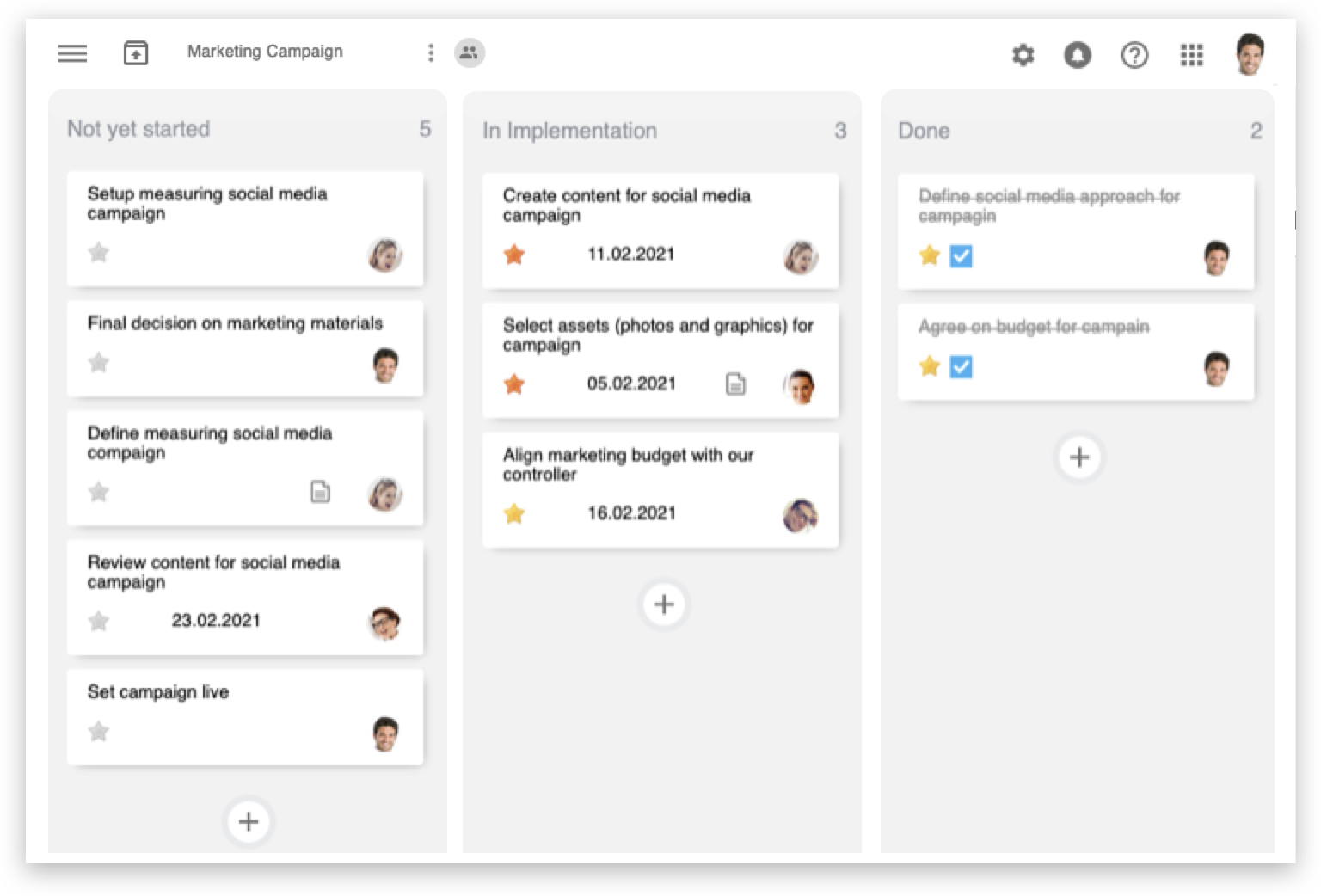 Easily structure and organize tasks in task lists or tasks boards - whatever fits best for you. Sure you can always switch between both. Filter your tasks e.g. by priority or due date - so you can focus on the tasks to accomplish next. In addition the following features support you getting your things done: